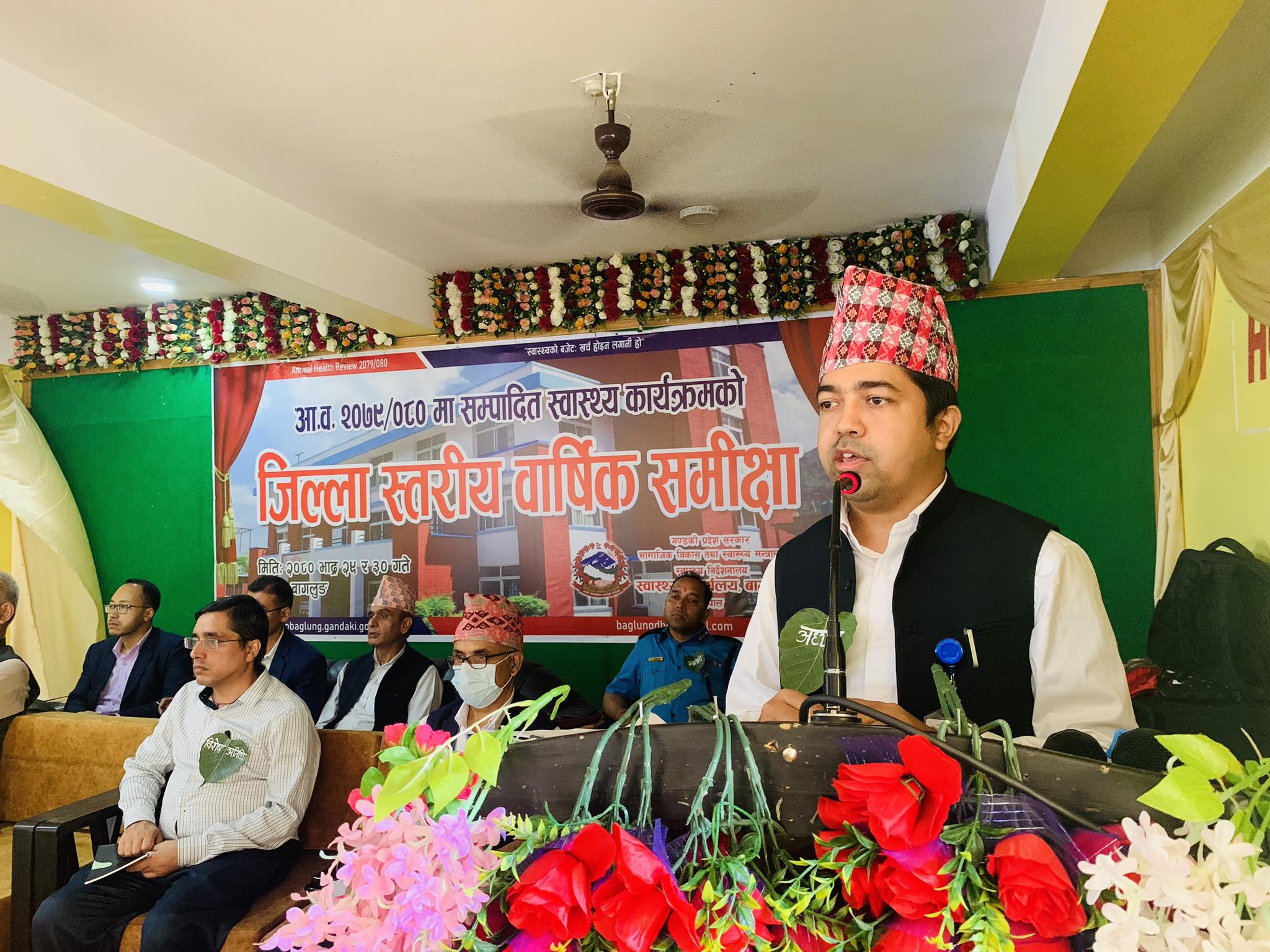 कार्यक्रममा जिल्लाको बार्षिक प्रगती र स्वास्थ्य क्षेत्रको अवस्थाको बारेमा स्वास्थ्य कार्यालय बागलुङका प्रमुख प्रविण शर्माले शुक्ष्म विश्लेषण सहित एकीकृत प्रस्तुतीकरण गर्नुभएको थियो ।