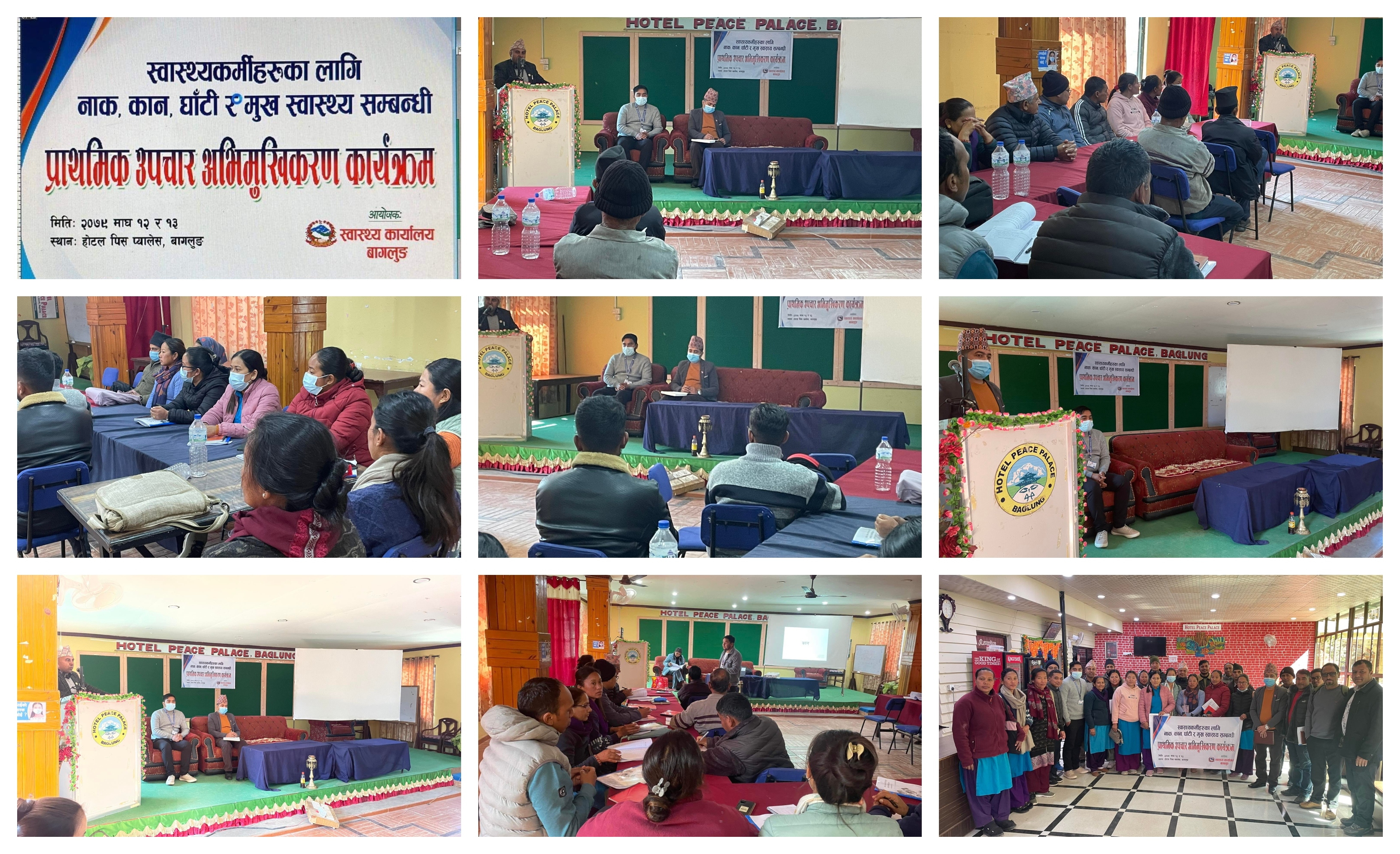 स्वास्थ्य कार्यालय बागलुङको आयोजनामा जिल्लाका दशवटै पालिकाका स्वास्थ्यकर्मीहरुका लागि नाक,कान,घाँटी र मुख स्वास्थ्य सम्बन्धी अभिमुखकरण कार्यक्रम सम्पन्न भएको छ । कार्यक्रममा २५ जना स्वास्थ्यकर्मीहरुको सहभागीता रहेको थियो भने कार्यक्रमलाई धौलागिरी अस्पतालका चिकित्सक तथा स्वास्थ्य कार्यालयका फोकल पर्शनले सहजीकरण गर्नुभएको थियो।