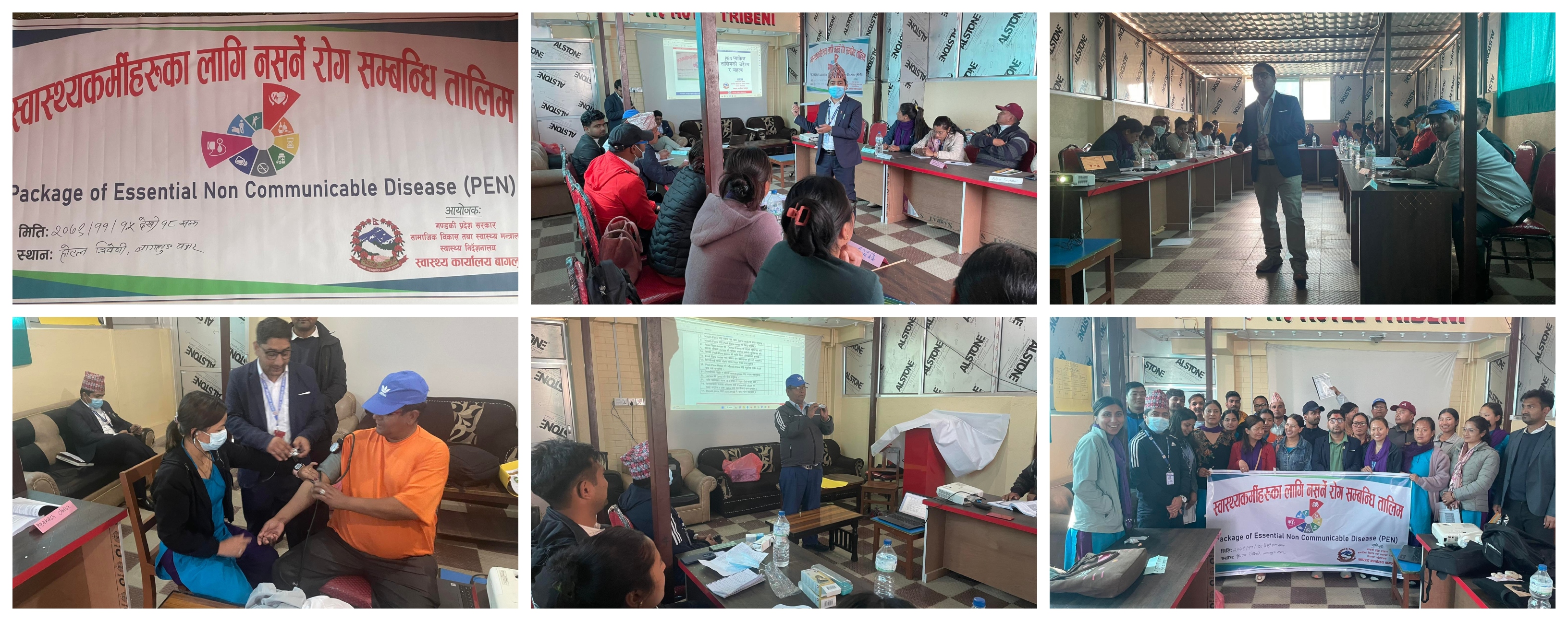 स्वास्थ्य कार्यालय बागलुङको आयोजनामा स्वास्थ्यकर्मीहरुका लागि नसर्ने रोग सम्बन्धी ४ (२०७९/११/१५ देखी १८) दिने PEN Package Training सम्पन्न भएको छ ।उक्त कार्यक्रममा धौलागिरि अस्पतालका मे अ क्षितिज रिजाल ,गलकोट न.पा.का शुशिल पौडेल,बा.न.पा का राम प्रसाद खनाल, लक्ष्मण ढकाल, स्वास्थ्य कार्यालय प्रमुख प्रविण शर्मा तथा क्षय कुष्ठ निरिक्षक देव प्रकाश घिमिरेले सहजिकरण गर्नुभएको थियो भने धौलागिरी आयुर्वेद औषधालाय संगको सहकर्यमा डा. सरोज कुमार राय बाट सहभागीहरुलाइ योग शिक्षा तथा योग अभ्यास पनि गराइएको थियो। तालिममा बागलुङ जिल्लाका ९ वटा स्थानिय तहका २५ जना स्वास्थ्यकर्मीहरुको सहभागिता रहेको थियो।