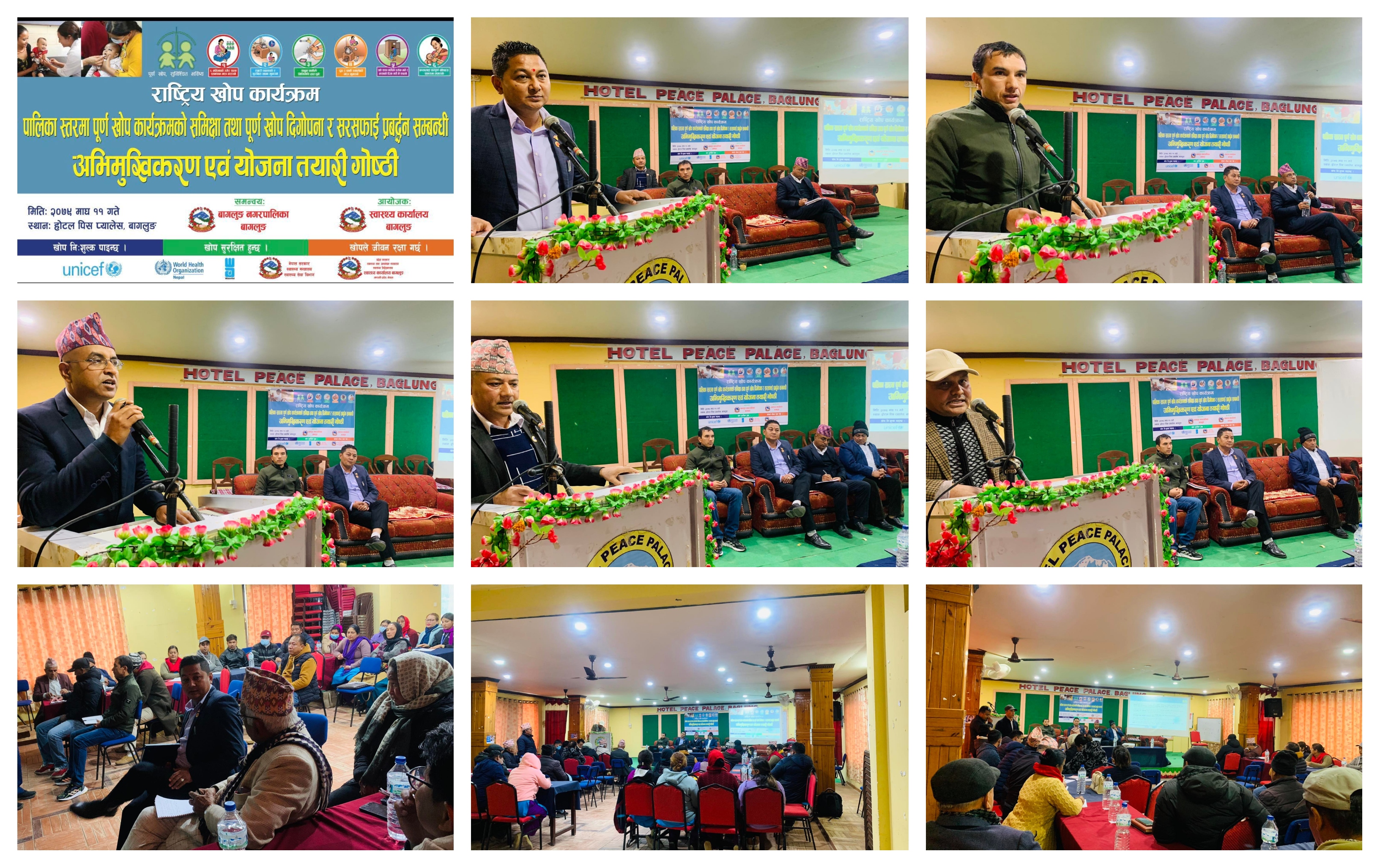 स्वास्थ्य कार्यालय बागलुङको आयोजना र बागलुङ नगरपालिकाको समन्वय र सहकार्यमा संचालित पालिका स्तरमा पूर्ण खोपको समीक्षा तथा पूर्ण खोप दिगोपना र सरसफाई प्रवर्द्धन सम्बन्धी अभिमुखिकरण एवं योजना तयारी गोष्ठी कार्यक्रम बागलुङ नगरपालिकामा सम्पन्न भएको छ।