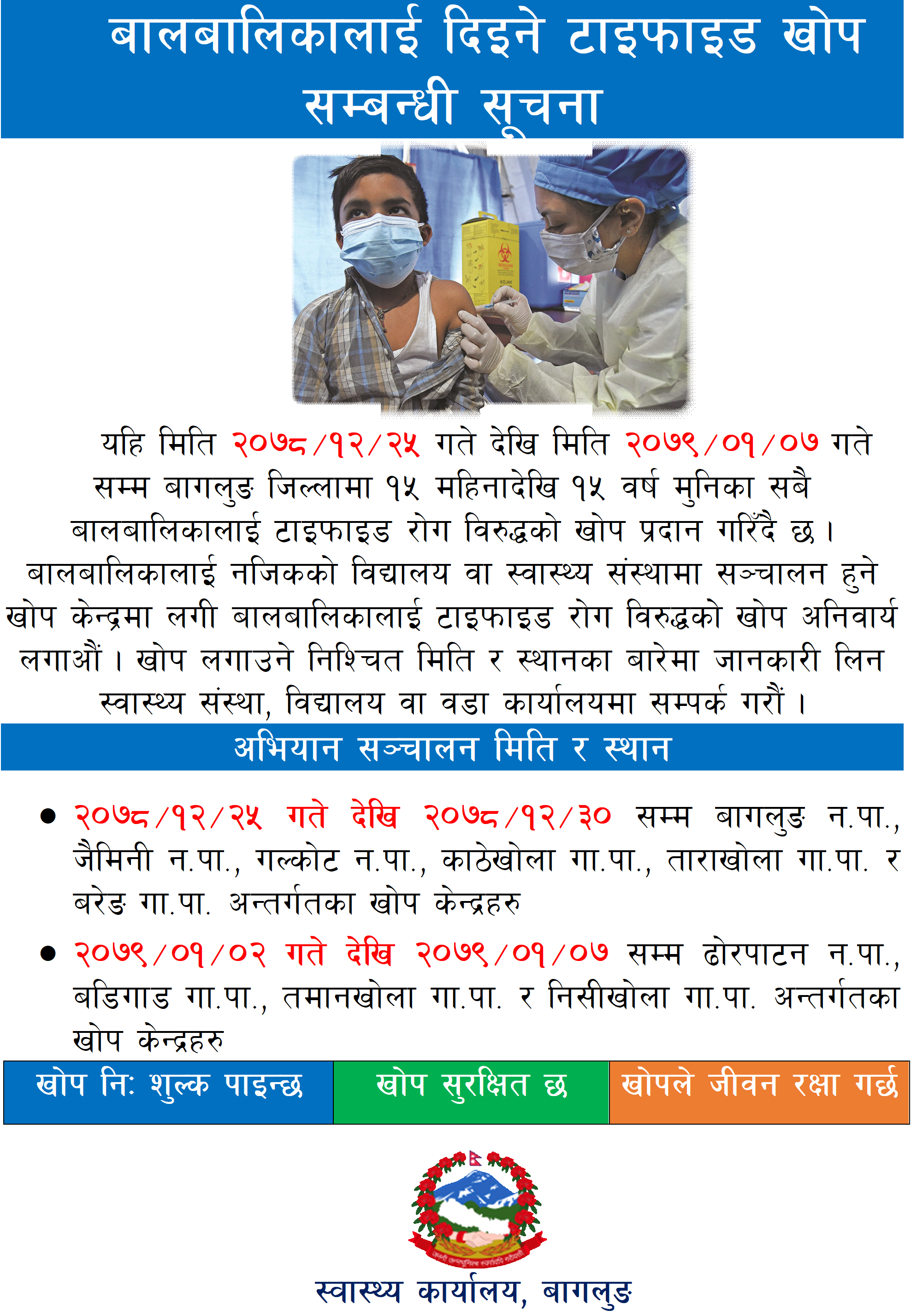 टाइफाईड खोप अभियान सम्बन्धि अत्यन्त जरुरी सूचना