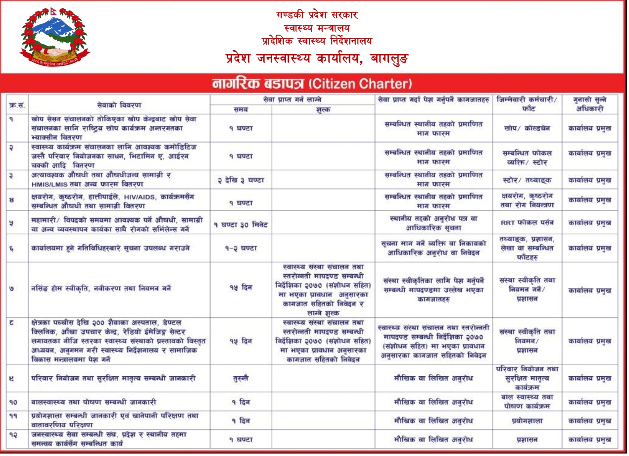 बागलुङ जिल्लास्थित स्थानीय तहका स्वास्थ्य शाखा प्रमुखको सम्पर्क